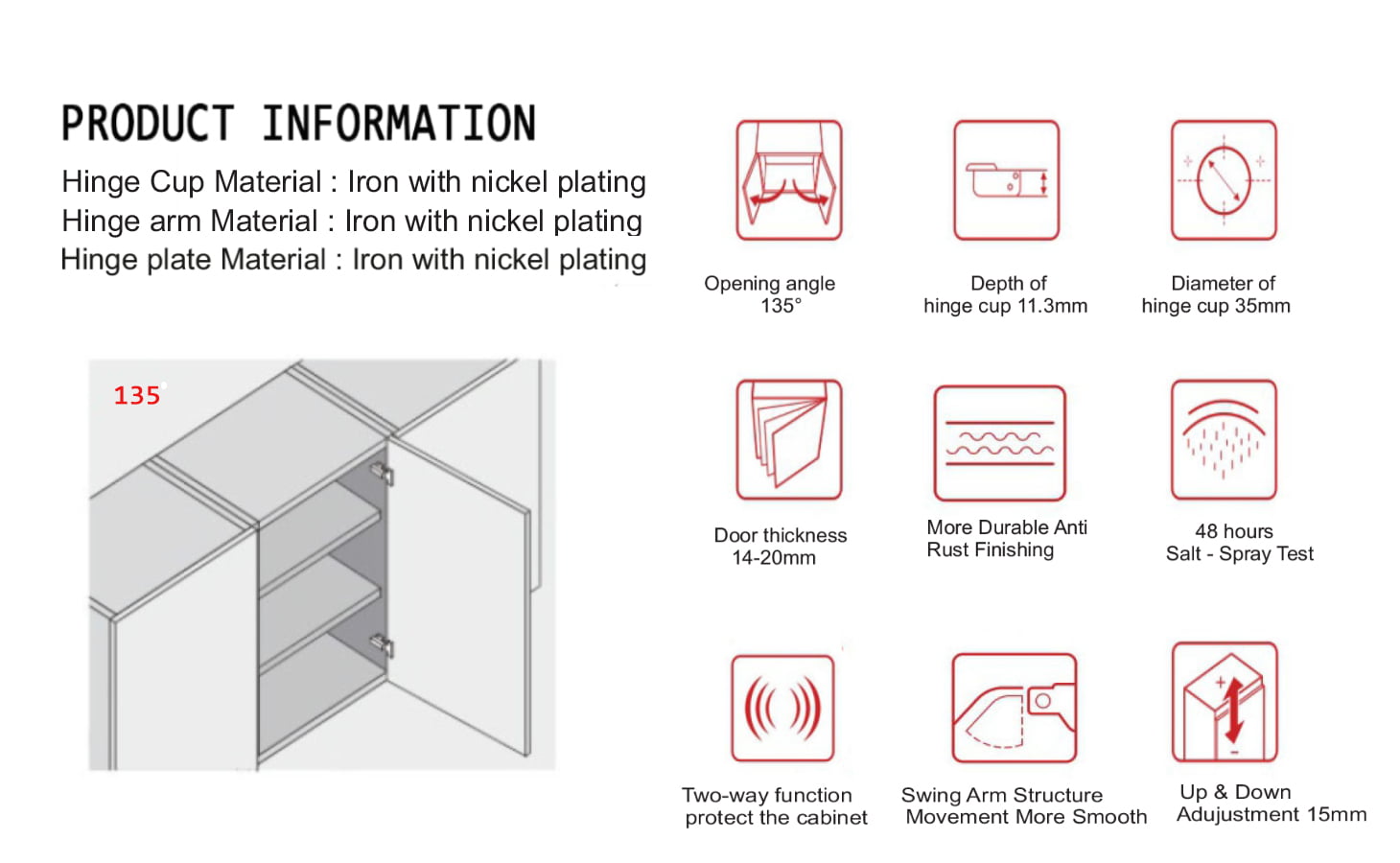 / 135° Clip–On Special Angle Hinge (Two Way)
